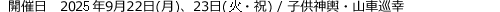 今年の代々木八幡宮例大祭は、9月22日(月)・23日(火・祝)に開催されました。今年は天候に恵まれ、爽やかな例大祭となりました。 写真と動画で今年のお祭りの風景を紹介します。